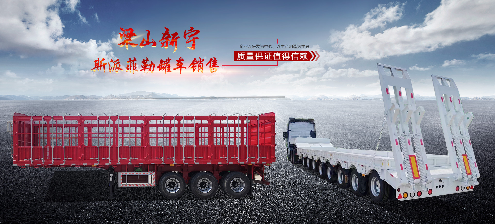 主營產品:粉粒物料運輸車、下灰半掛車、罐式污水專用車、倉柵式半掛車、自卸半掛車、低平板半掛車、油罐車輛、特種半掛車量等8大系列,60多種車型的生產與銷售